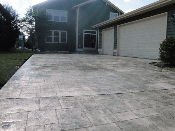 “Stamped concrete driveway in Vernon Hills, IL in Ashlar Slate pattern”
