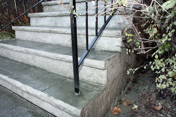 “Cantilevered stamped concrete stairs with Ashlar Slate pattern and rock face on all vertical surfaces”